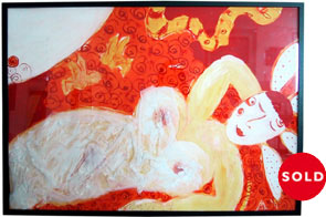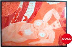 Acryl, Aquarell, Ölpastellkreide, Stoff und Federn auf