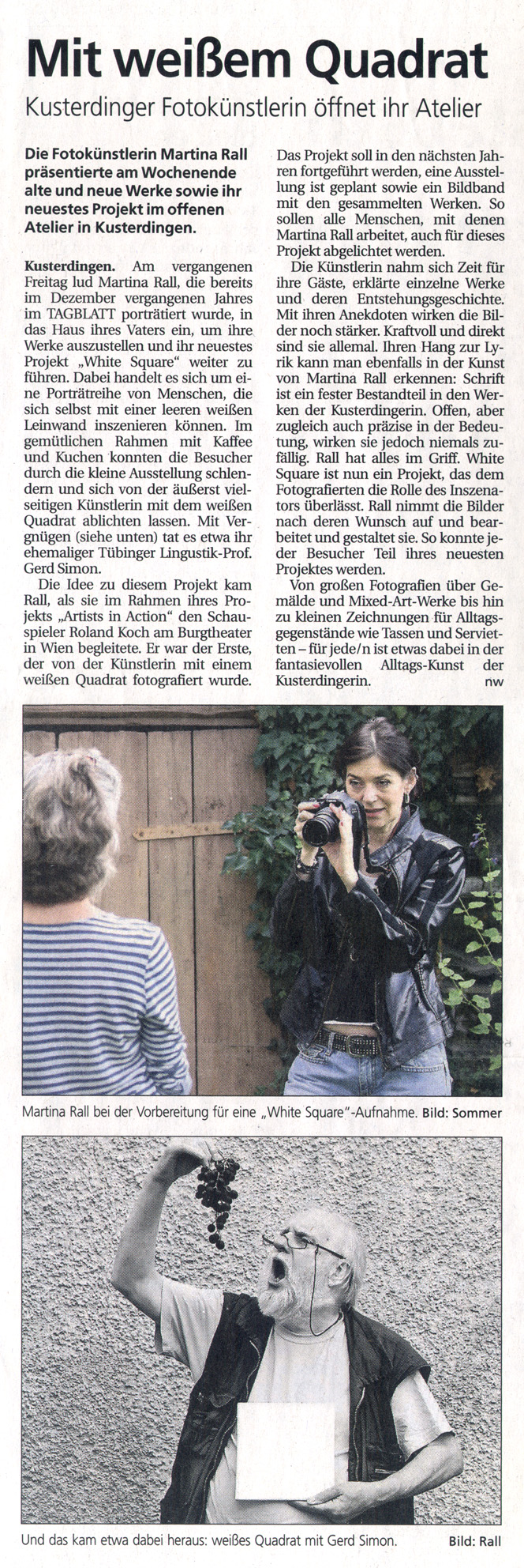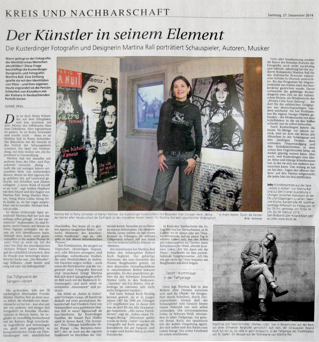 Presse "Der Künstler in seinem Element" Ulrike Pfeil porträtiert Martina Rall Schwäbisches Tagblatt, 27.12.2014 Schwäbisches Tagblatt, 08.09.2015